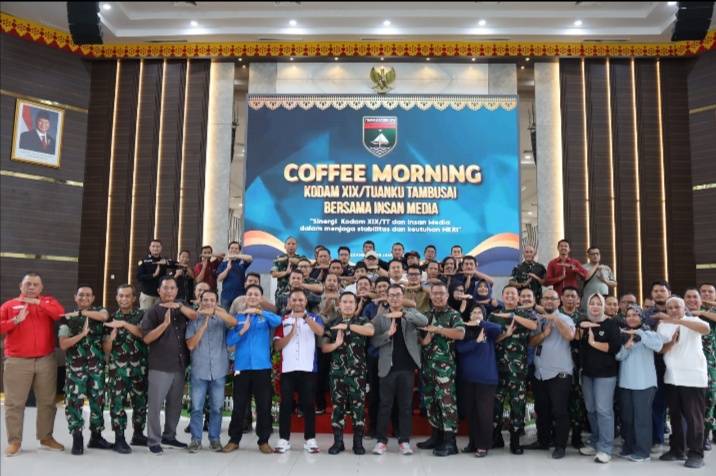 Kilatriau.id – PEKANBARU || Kodam XIX/Tuanku Tambusai menggelar kegiatan Coffee Morning bersama insan pers, Rabu (28/1/2026) pukul 08.00 WIB, di Gedung Kaharuddin Nasution, Makodam XIX/Tuanku Tambusai, Pekanbaru. Kegiatan ini menjadi momentum strategis untuk mempererat sinergi, komunikasi, dan kemitraan antara TNI AD dengan media massa di Provinsi Riau.