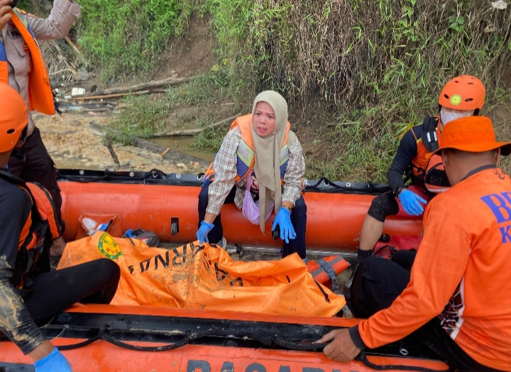 Kejadian bermula pada hari Jumat (3/4/2026) sore, ketika korban dilaporkan hilang terseret arus saat sedang bermain di pinggir sungai bersama teman-temannya. Pencarian sempat berlangsung selama 5 hari namun terkendala oleh debit air yang tinggi, arus yang deras, serta jarak pandang yang terbatas akibat cuaca.